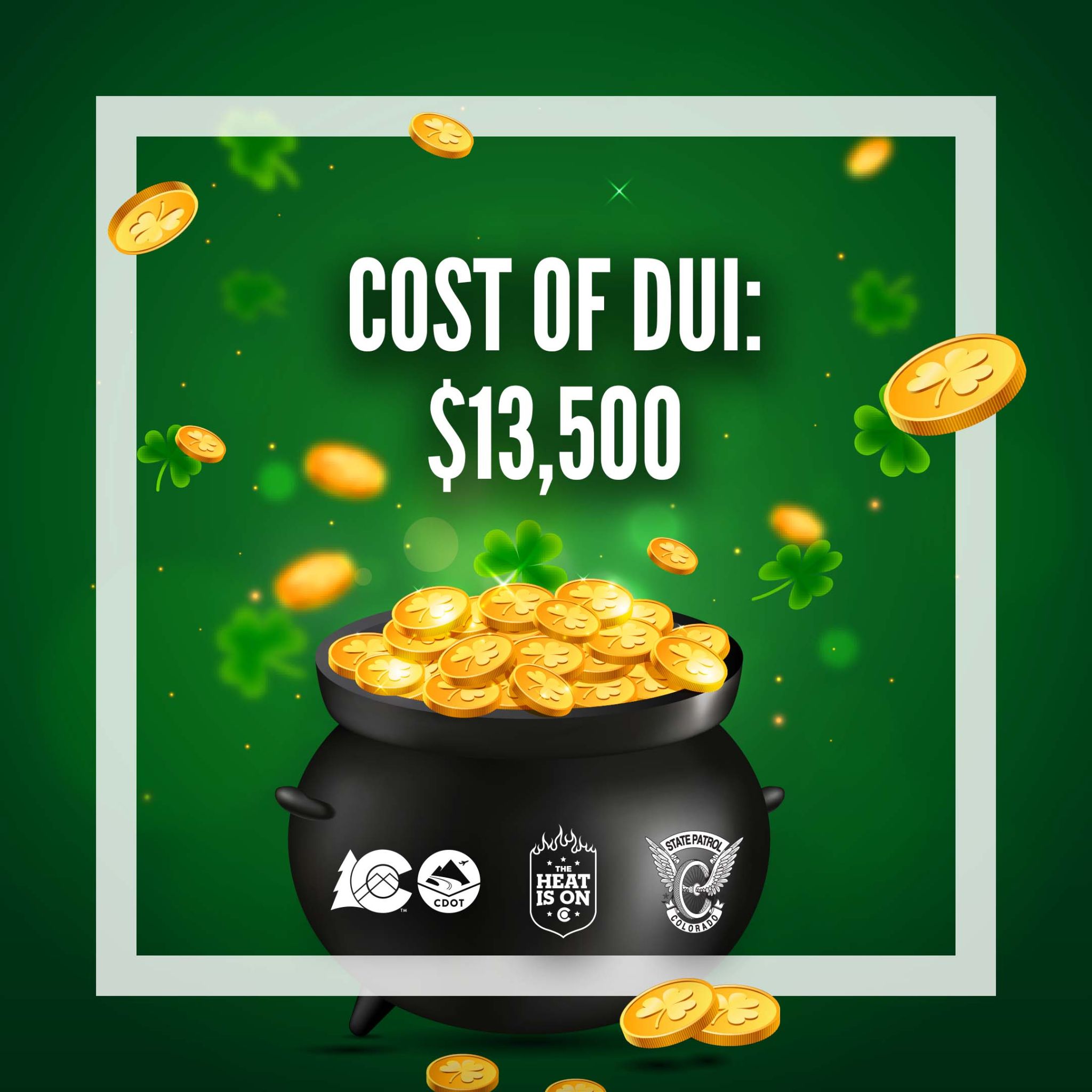 Cost of DUI - $13,500 graphic https://www.codot.gov/news/2022/march/assets/cost-of-dui-graphic/view https://www.codot.gov/news/2022/march/assets/cost-of-dui-graphic/@@download/image/CDOT_HIO_StPatricks_Post3_220315.jpg Cost of DUI - $13,500 graphic Click to view full-size image… Size: 228.4 KB