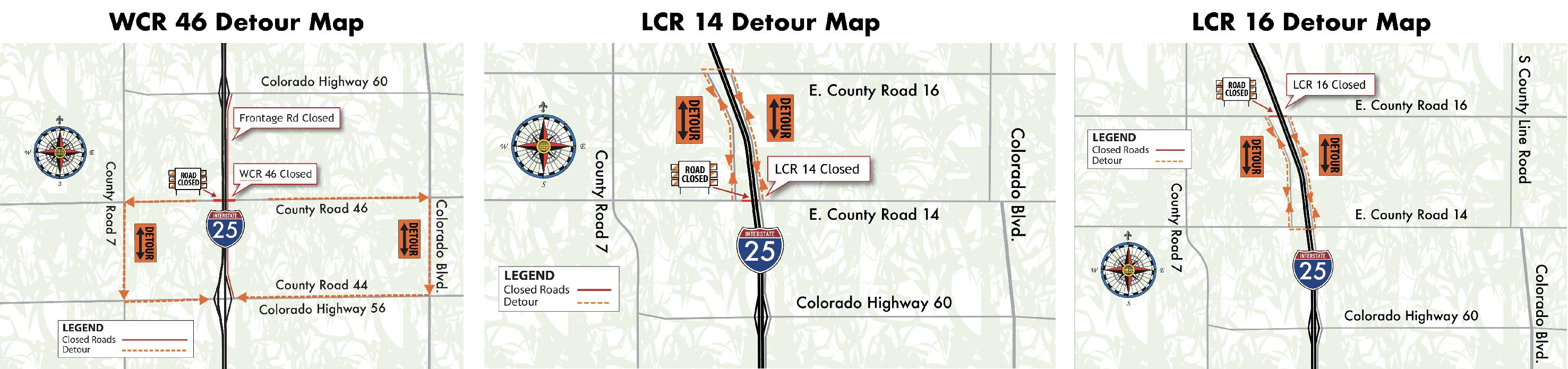 Weld County Road 46, Larimer County Road 14 and Larimer County Road detour maps