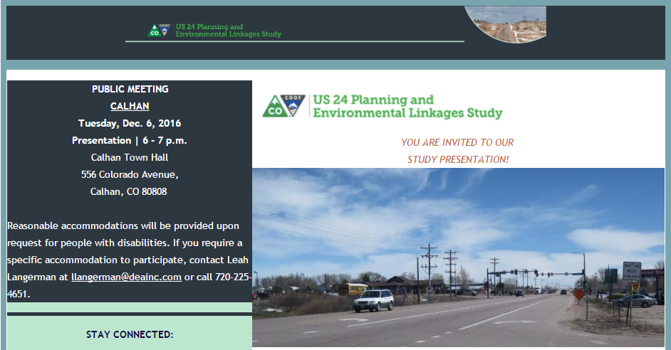 You are here: Home Projects US 24 Corridor Improvements in El Paso County Assets Dec. 6, 2016 Meeting Dec. 6, 2016 Meeting https://www.codot.gov/projects/us24corridorelpaso/assets/dec-6-2016-meeting/view https://www.codot.gov/projects/us24corridorelpaso/assets/dec-6-2016-meeting/@@download/image/Dec. 6 Meeting.PNG Dec. 6, 2016 Meeting Click to view full-size image… Size: 343.9 KB