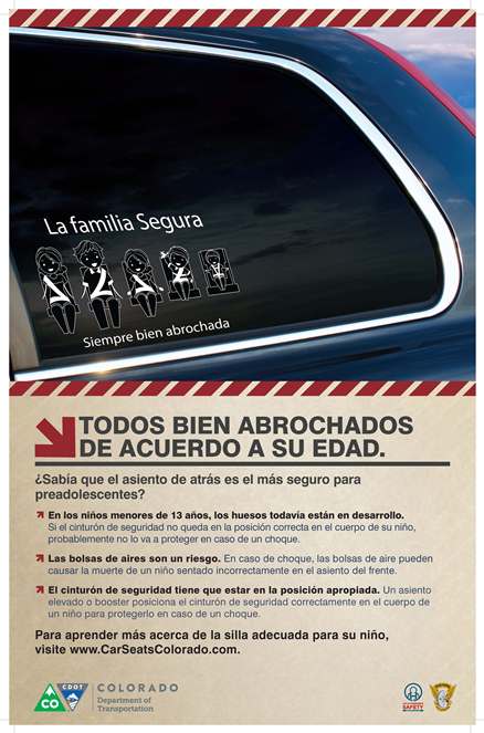 You are here: Home Safety Car Seats Colorado Assets Everybody Buckled Up Image Spanish Everybody Buckled Up Image Spanish https://www.codot.gov/safety/carseats/assets/13ct10005-f-cps-posters-spanish-hi-res.jpg/view https://www.codot.gov/safety/carseats/assets/13ct10005-f-cps-posters-spanish-hi-res.jpg/@@download/image/13CT10005_F CPS_Posters Spanish_Hi-res.jpg Everybody Buckled Up Image Spanish Click to view full-size image… Size: 48.3 KB