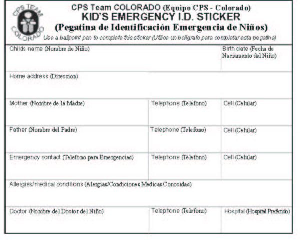 You are here: Home Safety Car Seats Colorado Assets Emergency ID Sticker Emergency ID Sticker https://www.codot.gov/safety/carseats/assets/seatsticker.jpg/view https://www.codot.gov/safety/carseats/assets/seatsticker.jpg/@@download/image/seatsticker.jpg Emergency ID Sticker Click to view full-size image… Size: 43.7 KB