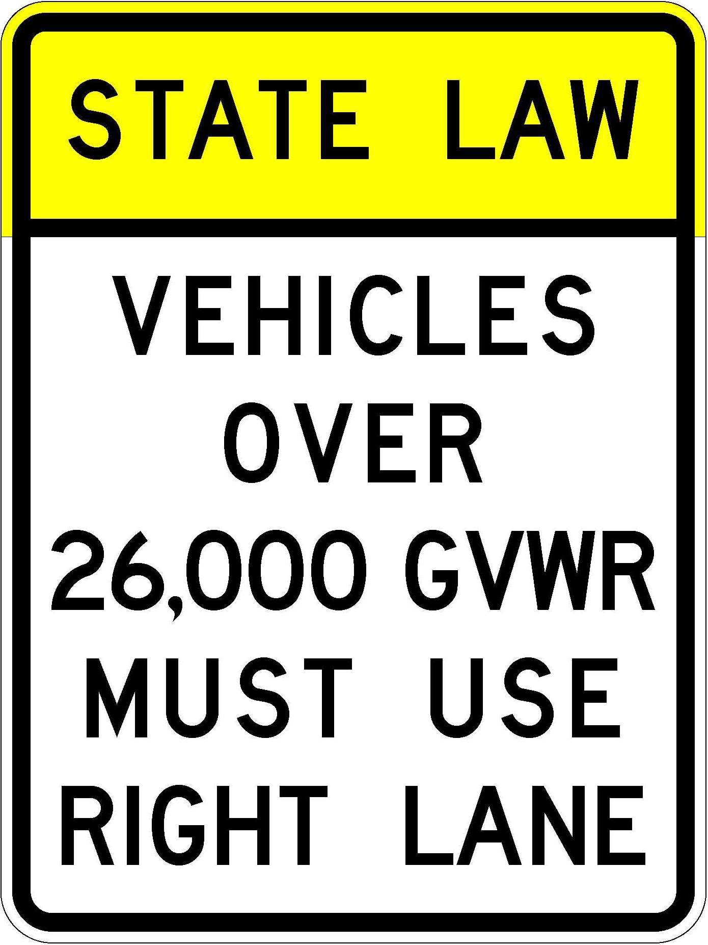 R4-5a State Law Vehicles Over 26,000 GVWR Must Use Right Lane